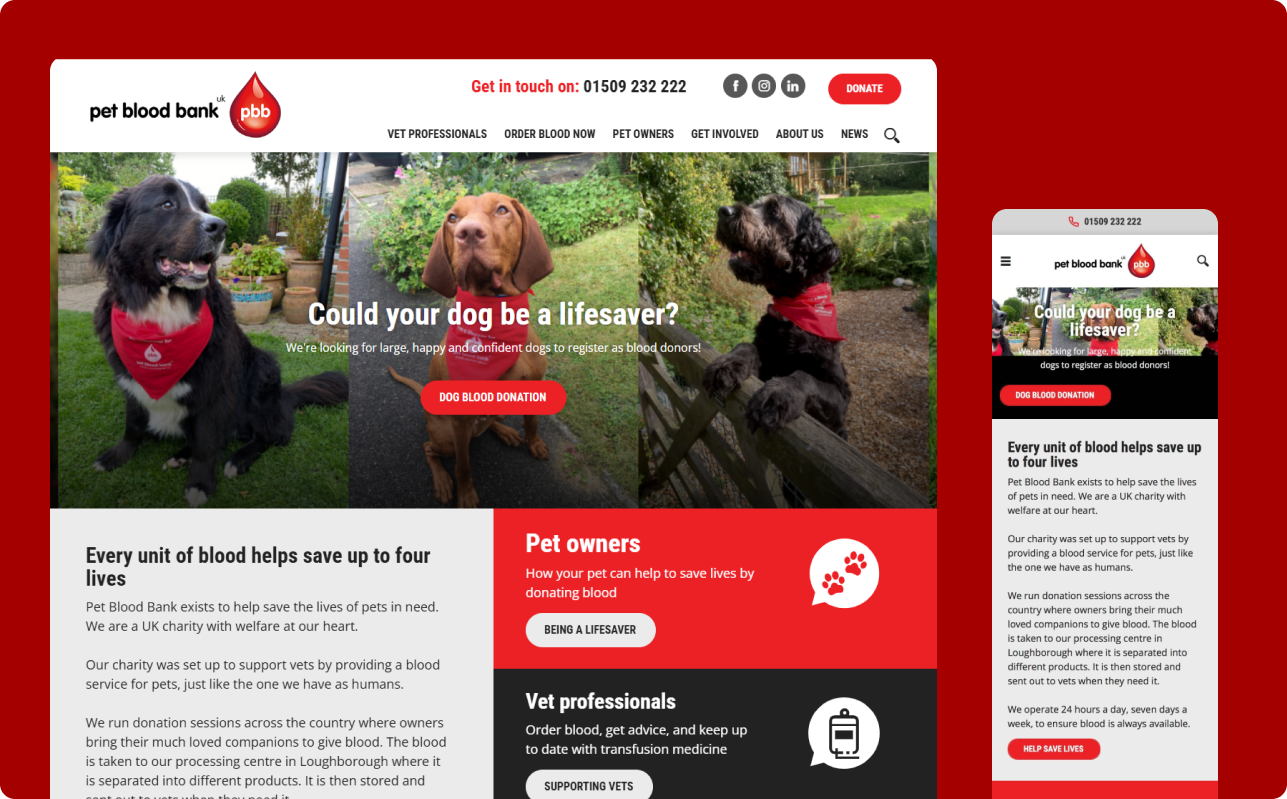 When Pet Blood Bank first approached us, they had a simple but urgent challenge: how to make it easier for pet owners to donate blood. As the UK’s only charity dedicated to providing a 24/7 blood service for animals, their work quite literally saves lives. But with demand from vets growing and the process of recruiting and retaining donors proving time-consuming, the existing systems weren’t keeping pace. For many pet owners, the act of donating was still buried in admin—phone calls, paperwork, and scattered communications—when it needed to be straightforward, reassuring, and rewarding.